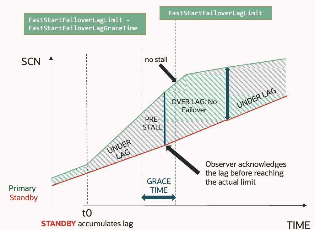 What you need to do: set FastStartFailoverLagGraceTime to a value greater than 0 and lower or equal to 3 to make this feature effective. The default of 0 keeps the old behavior.